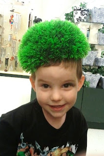 The day before, I picked up Heaven and the kids, and we made a little trip to Hobby Lobby to buy our supplies. You would have thought that Booger had never been in a craft store before. "What is that?!? I want to see it! Can I touch it? I want to try it!" We looked at just about every single item in the store, and Banana and Booger even had a fashion show!